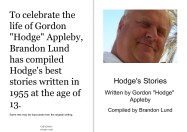 To celebrate the life of Gordon "Hodge" Appleby, Brandon Lund has compiled Hodge's best written in 1955 at the age of 13.