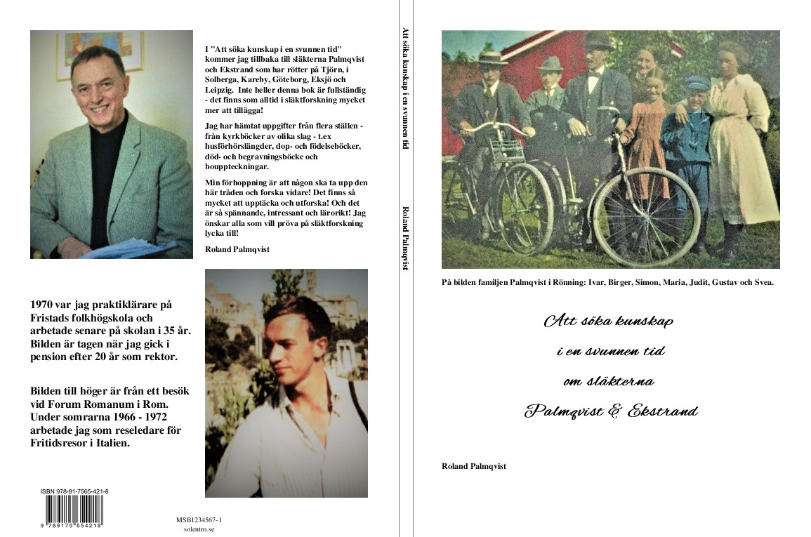 I boken "Att söka kunskap i en svunnen tid" kommer jag tillbaka till min fars och mors släkter - Palmqvist och Ekstrand med rötter på Tjörn, i Solberga, Kareby, Göteborg, Eksjö och Leipzig I boken berättar jag också om "nya" släktingar jag fått genom DNA-testning.