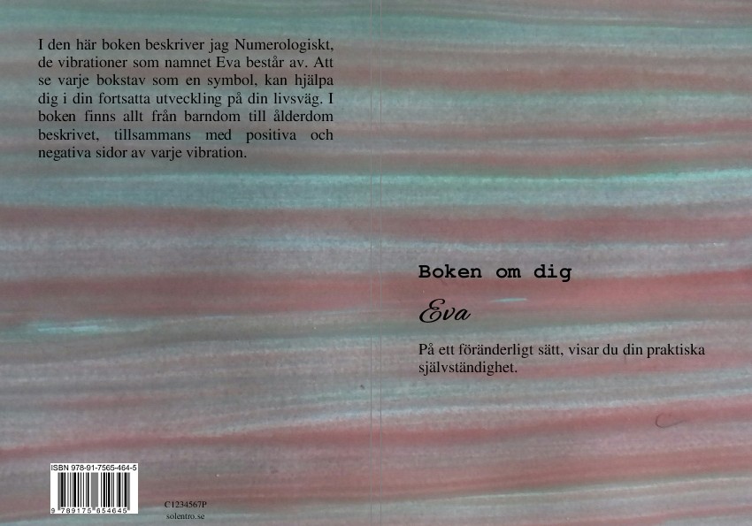 I den här boken beskriver jag Numerologiskt de vibrationer som namnet Eva består av. Att se varje bokstav som en symbol, kan hjälpa dig i din fortsatta utveckling på din livsväg. I boken finns allt från barndom till ålderdom beskrivet, tillsammans med positiva och negativa sidor av varje vibration.