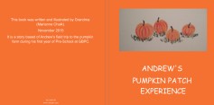 This is a story about Andrew's trip to the pumpkin patch with his pre-school class. His mother accompanied him. Andrew had a variety of experiences on his trip. The book details these experiences.